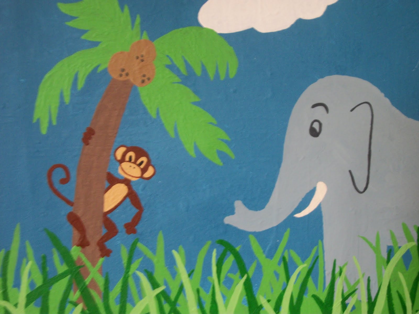 I have a list of projects that seems to grow exponentially faster than I check them off that list. But I did, in fact, check this one off the list recently. I've been working on these paintings since Montana. They're a pair of jungle-ish scenes for the kids' room. To skirt the inevitable teasing from the DH, I have made them (roughly) ecologically accurate. The top one is India, the bottom one Africa.